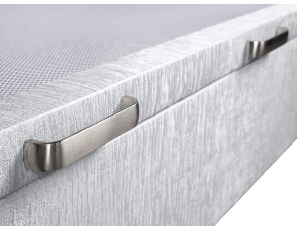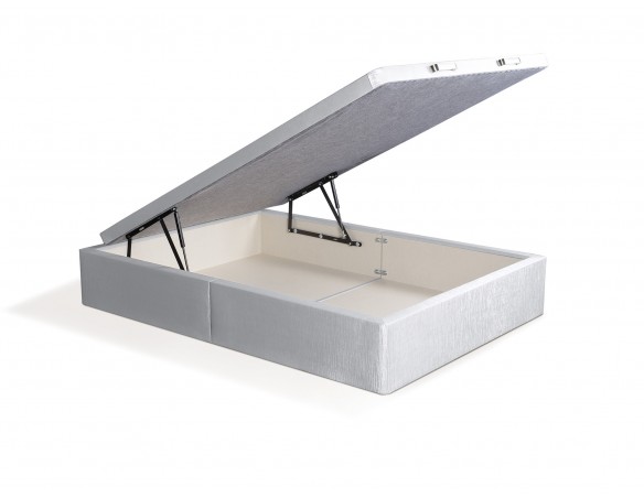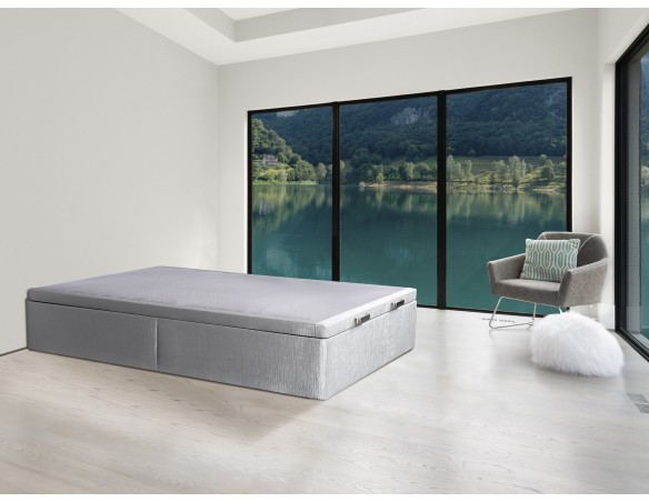 Canapé abatible tapizado en polipiel o tejidos al suelo de gran capacidad de almacenaje y tapa recubierta con tejido que favorece la transpiración.