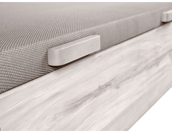 Elígelo por su gran capacidad de almacenamiento, que contribuirá al orden de tu dormitorio, y la transpirabilidad de su tapa, tapizada con tejido de malla transpirable y base de fibra compactada. Fácil apertura frontal de tapa única y tiradores de madera de haya a juego.