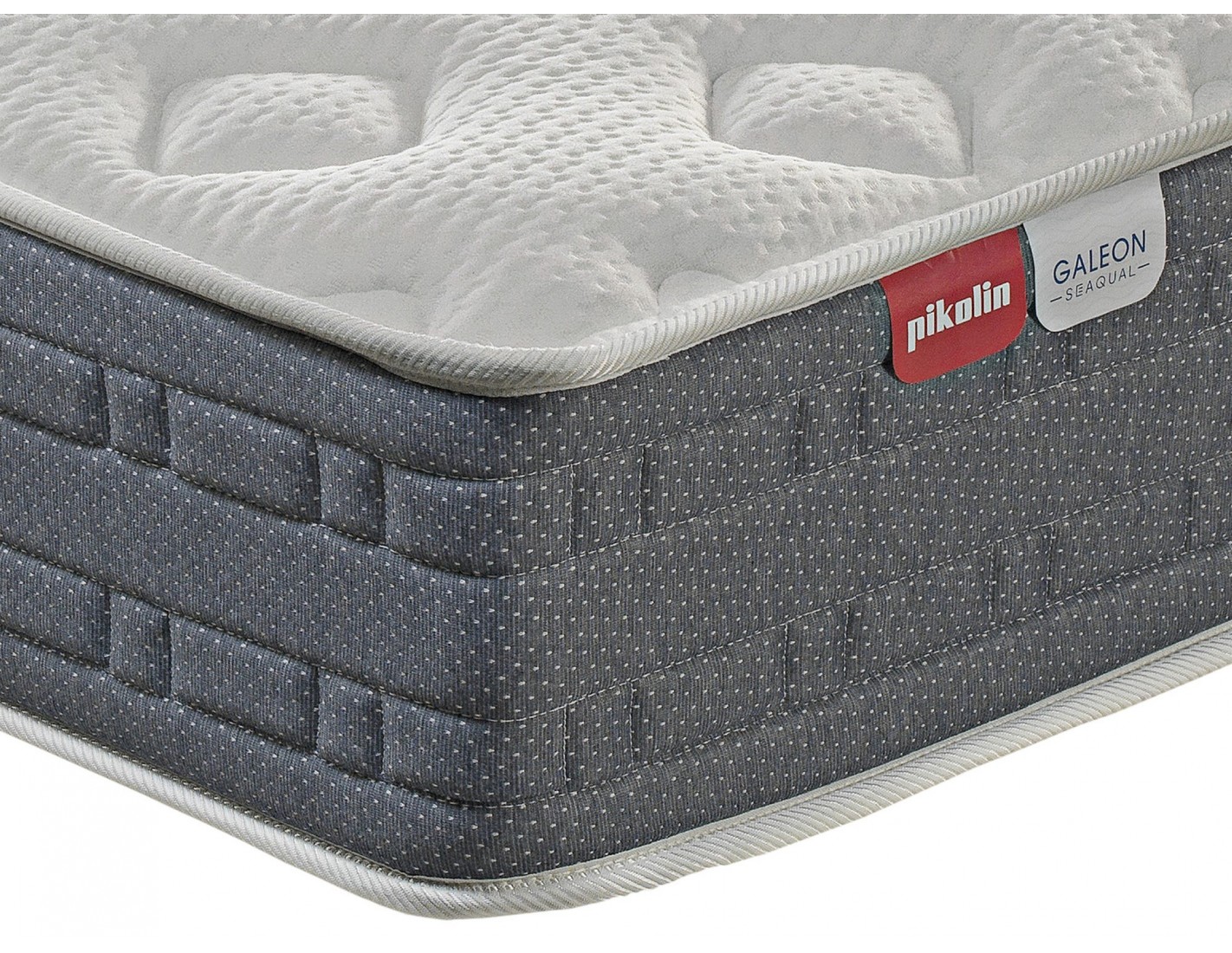 El colchón Galeón Pikolin incorpora tejido exterior Seaqual, fabricado con hilo de poliéster de alta calidad procedente de materiales reciclados recogidos del océano. Este tejido aporta suavidad, resistencia y contribuye al cuidado del medio ambiente.