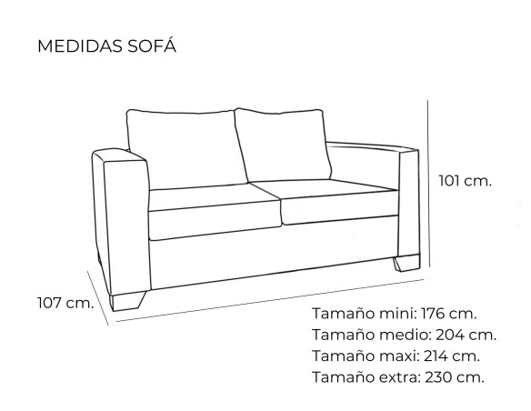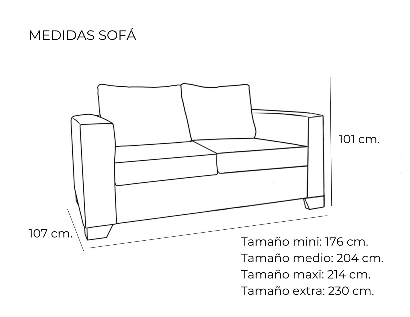 - Versatilidad: disponible en sofá de 2, 3 plazas o chaiselongue.