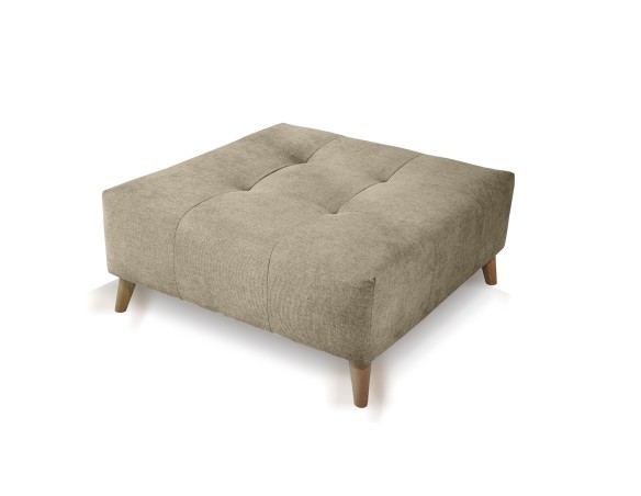 Puff terminado en capitoné con patas de madera, que le aportan la rigidez necesaria para que lo puedas utilizar tanto como un asiento extra, como un reposapiés para tu salón.