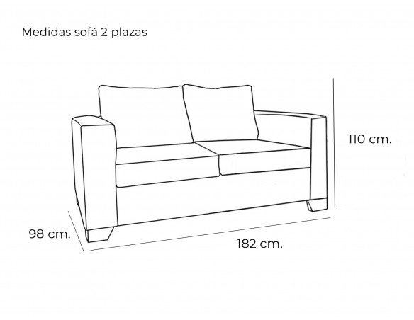 MEDIDAS: A continuación, te indicamos las medidas de este modelo. Ten en cuenta que por los rellenos, al ser espumaciones, los sofás pueden sufrir ligeras variaciones de +/- 5 cm. como máximo en sus distintas medidas.