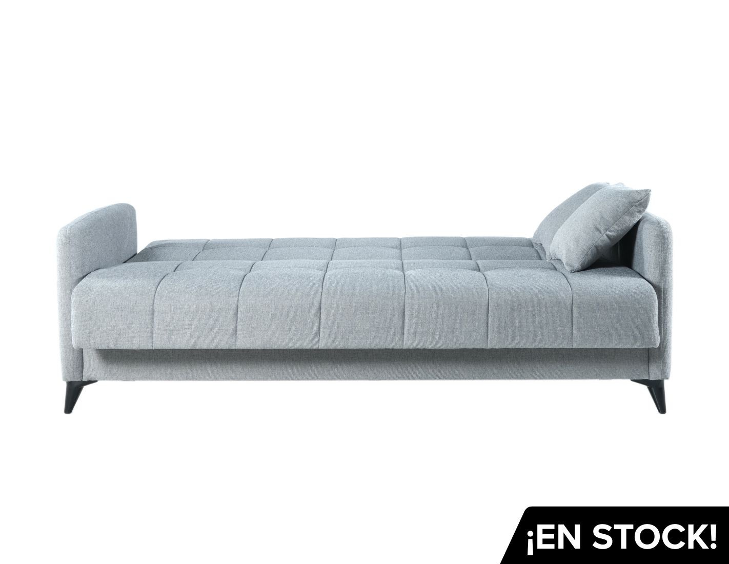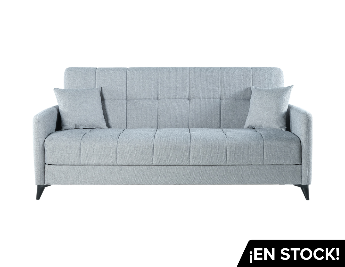 El sofá cama Santi ofrece un excelente nivel de confort gracias a su amplio asiento con espuma de alta densidad y relleno de muelles, que proporciona una sentada firme, cómoda y duradera para el uso diario.